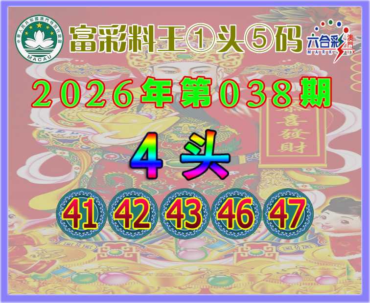 038期:【富彩料王】 🀄①头⑤码🀄【4头主:41.42.43.46.47】开:42准上榜高手