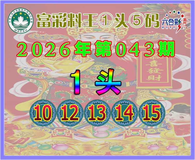 043期:【富彩料王】 🀄①头⑤码🀄【1头主:10.12.13.14.15】开:13准上榜高手