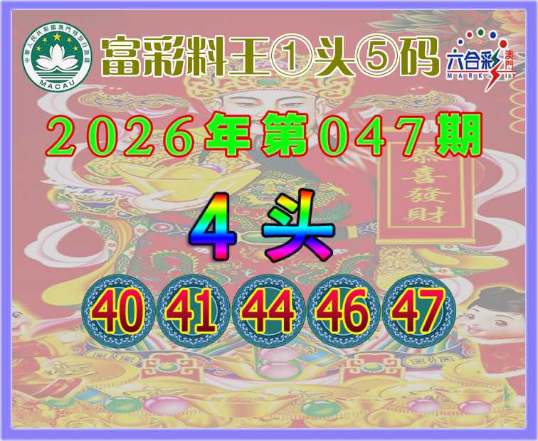 047期:【富彩料王】 🀄①头⑤码🀄【4头主:40.41.44.46.47】开:39