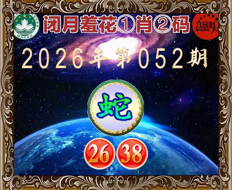 052期:〖闭月羞花〗 😜①肖②码😜【】【26.38】开:蛇38准上榜高手