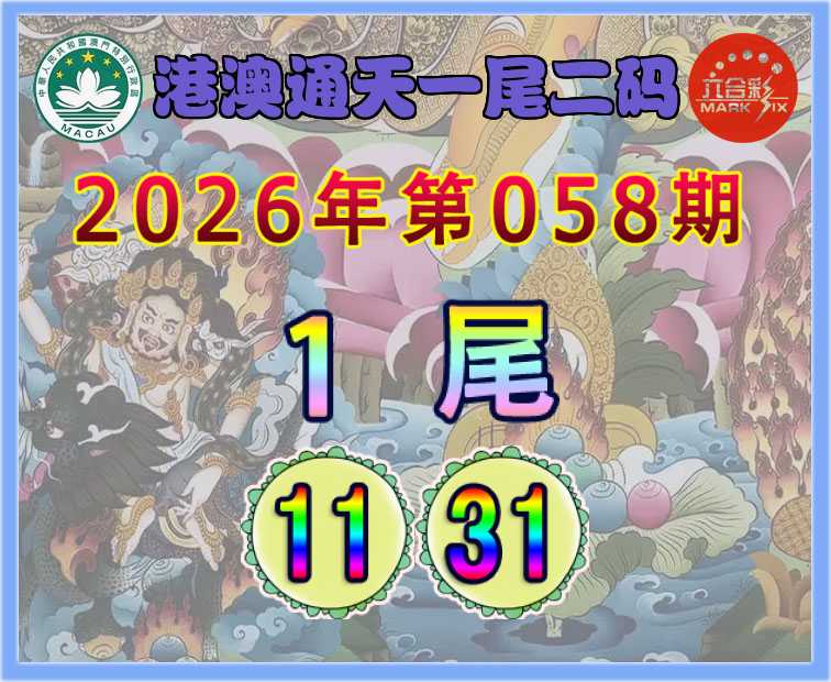058期:〖港澳通天〗 ♠️一尾二码♠️【1尾主:11.31】开:31